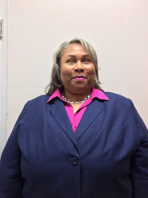 [An African-American woman (Empish Thomas) dresses in professional attire, jewelry, and shoulder-length hair. The woman smiles, standing in front of a light-colored wall.]
